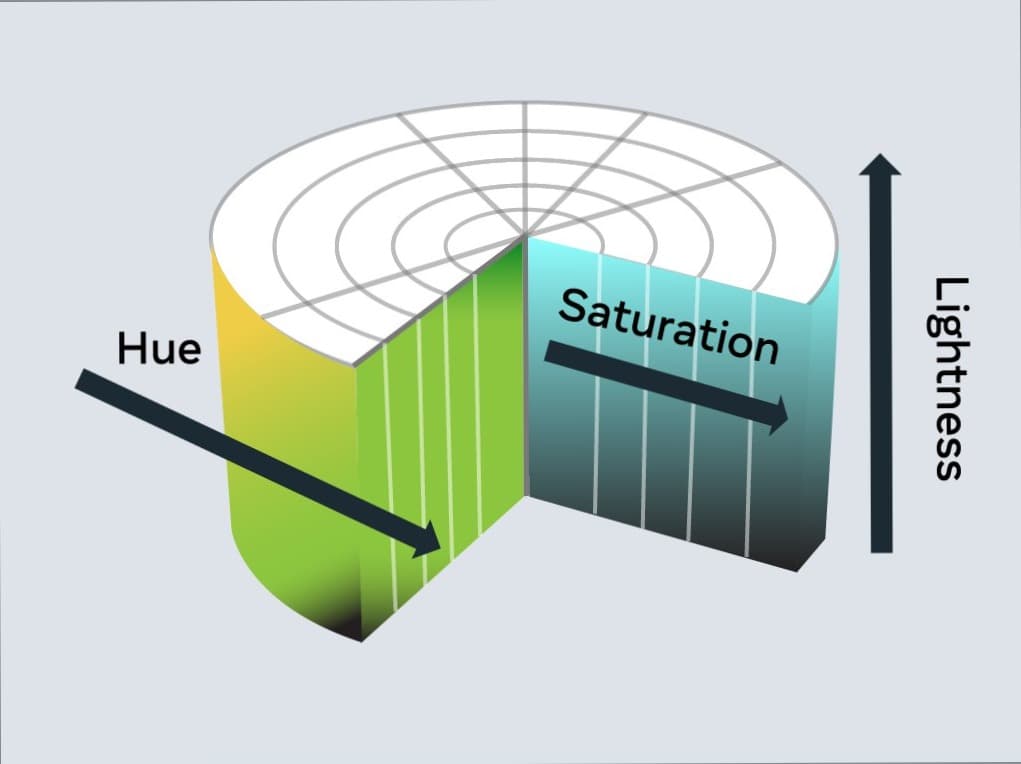 نموذج HSL يعرّف اللون من خلال: